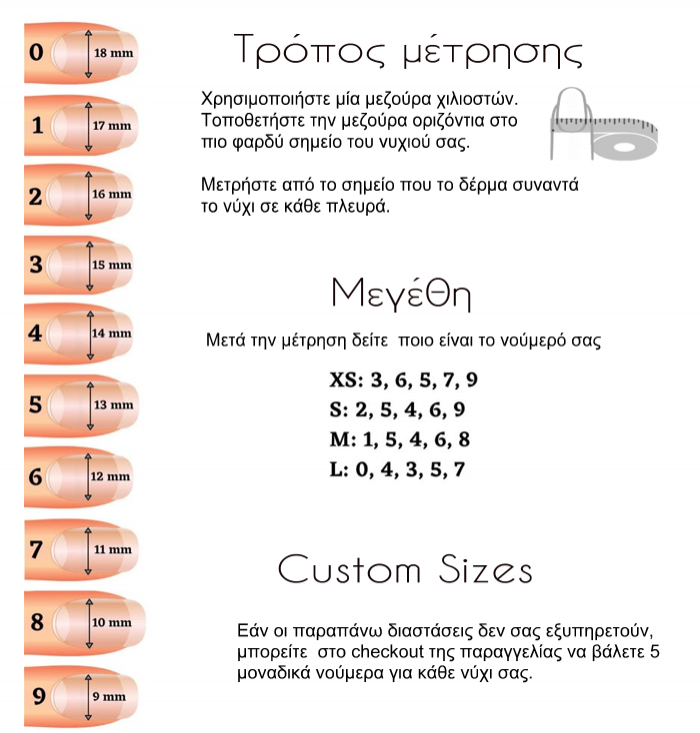 Τα Press On νύχια μας είναι χειροποίητα. Κατασκευασμένα από υψηλής ποιότητας υλικά που εξασφαλίζουν την ανθεκτικότητα και την δυνατότητα επαναχρησιμοποίησής τους (οι φορές επαναχρησιμοποίησης εξαρτώνται και από τον σωστό τρόπο αφαίρεσης). Αποτελούν μια εξαιρετική επιλογή για εσάς που θέλετε κομψά και περιποιημένα νύχια σε λίγα λεπτά.